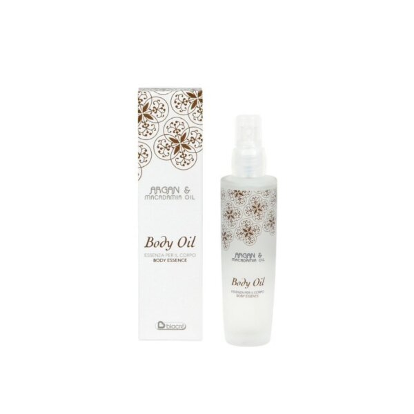 Biacrè Argan & Macadamia Oil Body Oil 100mlVochtinbrengende en verzachtende lichaamsoliespray met een warm en aangenaam parfum. Ook geschikt voor de droge of gebruinde huid.